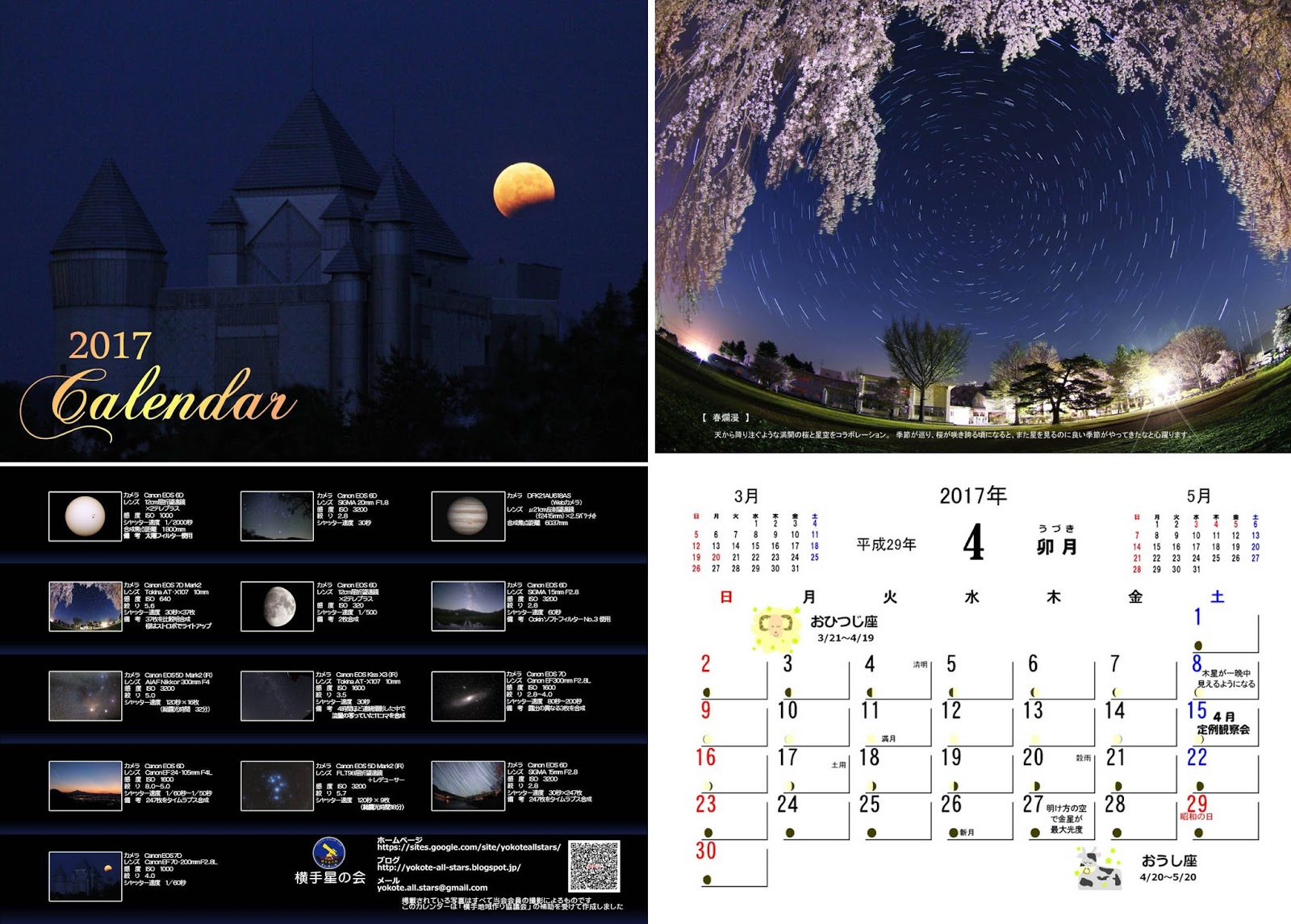 私たち「横手星の会」で作成したオリジナルカレンダーを1部500円で販売しています。
