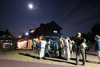 二つ目は、今回、夜中に晴れて、皆がいっせいに外に出て、双眼鏡をずらりと並べて星見を楽しんだことです。皆さん、やはり星見ストですね! そして、「両目で見るとこんなに見える!」というのを実感しました。