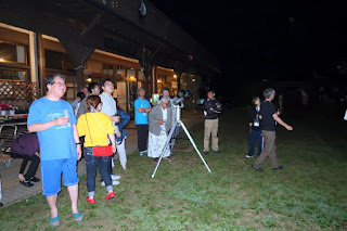 午後からにわか雨が降る天気で、今夜はゆっくり呑める・・・と思っていたら、「星が見えてるよ!」 という声に、みんな、中庭に集まりました。