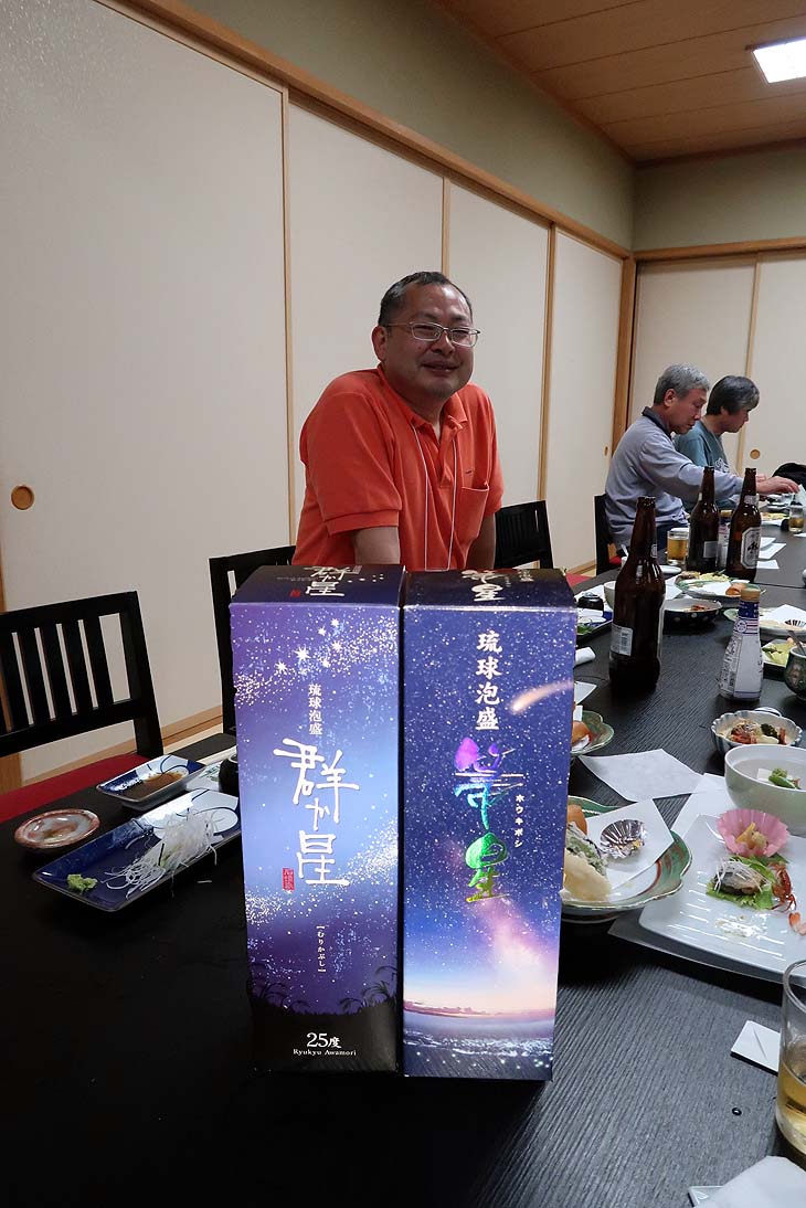 沖縄の泡盛までごちそうになってご満悦の会長!
